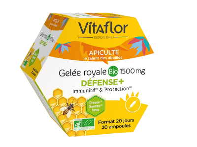 Les ampoules gelée royale bio Defense+ de Vitaflor sont des compléments alimentaires qui permettent de protéger les cellules et de booster les défenses immunitaires.