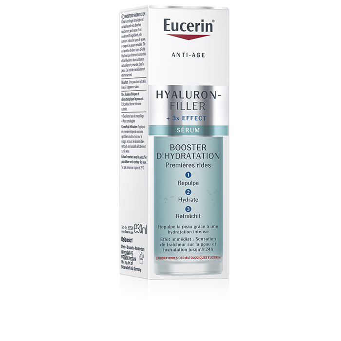 Le Sérum Booster d'Hydratation HYALURON-FILLER + 3x EFFECT donne à la peau un coup de boost immédiat et augmente l'hydratation de la peau jusqu'à 24h.