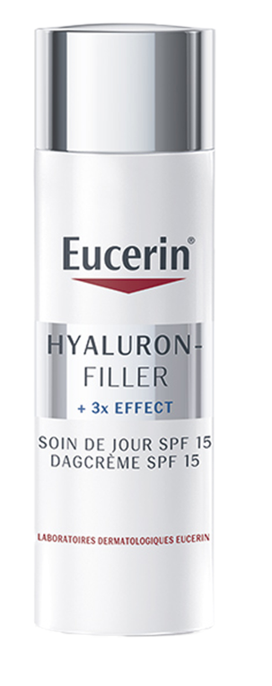 Le Soin de Jour Peau normale à mixte SPF 15 HYALURON-FILLER + 3x EFFECT aide à ralentir la baisse de production naturelle d'Acide Hyaluronique de la peau.