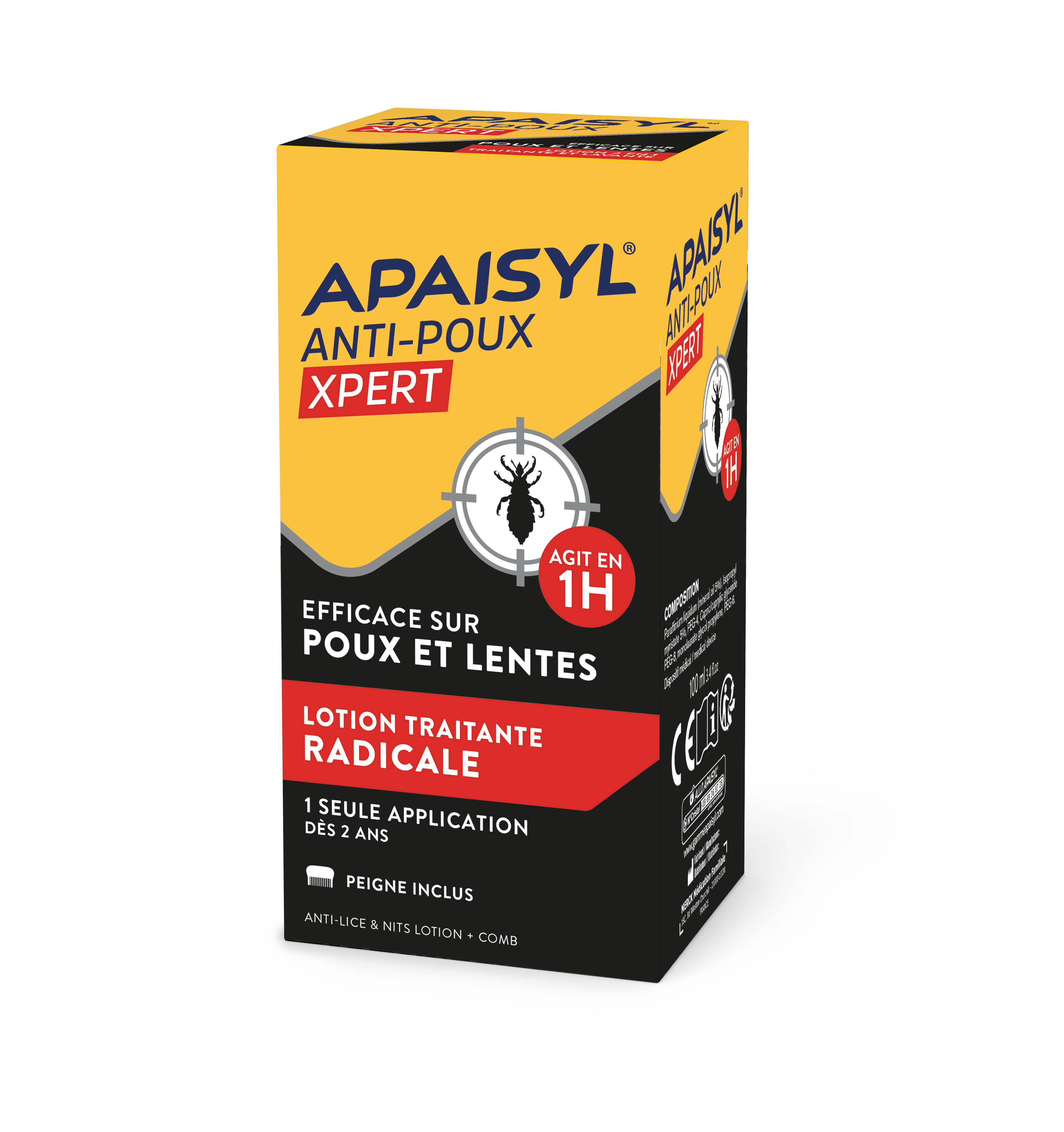 Apaisyl® Anti-Poux Xpert est une lotion traitante radicale qui tue 100% des poux et 100% des lentes* grâce à la formule brevetée de sa microémulsion (Technologie Microlice brevetée)