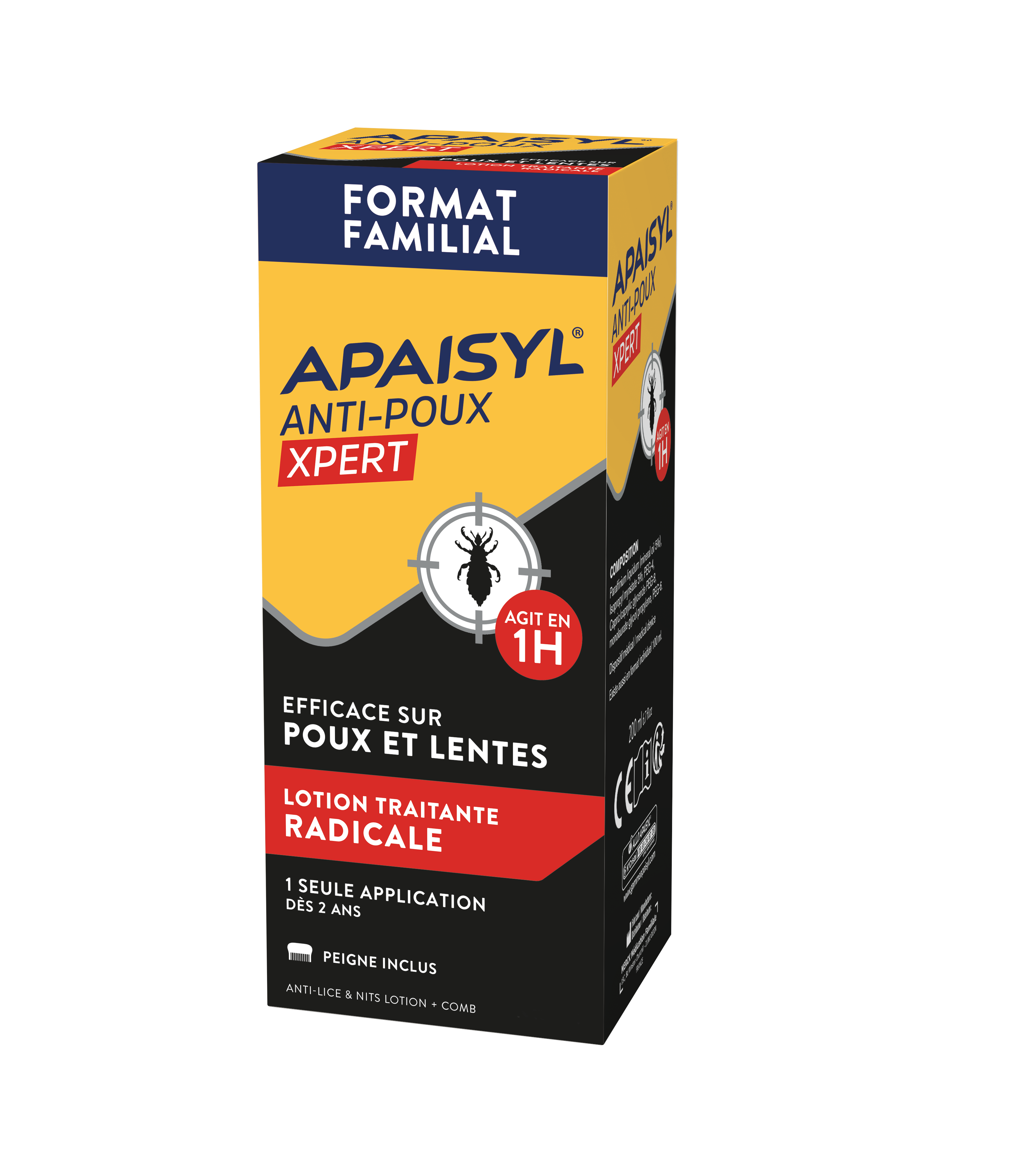 Apaisyl® Anti-Poux Xpert est une lotion traitante radicale qui tue 100% des poux et 100% des lentes* grâce à la formule brevetée de sa microémulsion (Technologie Microlice brevetée)