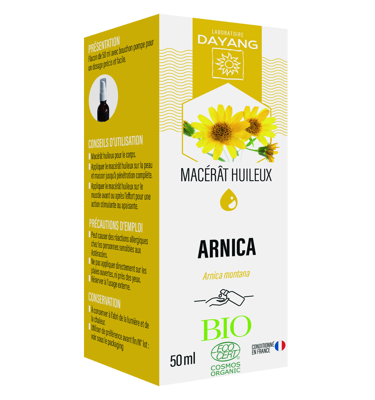 Le macérât huileux d'arnica possède des bienfaits adoucissants et calmants. A base d'arnica, il est recommandé pour les sportifs afin de soulager le muscle avant ou après l'effort.