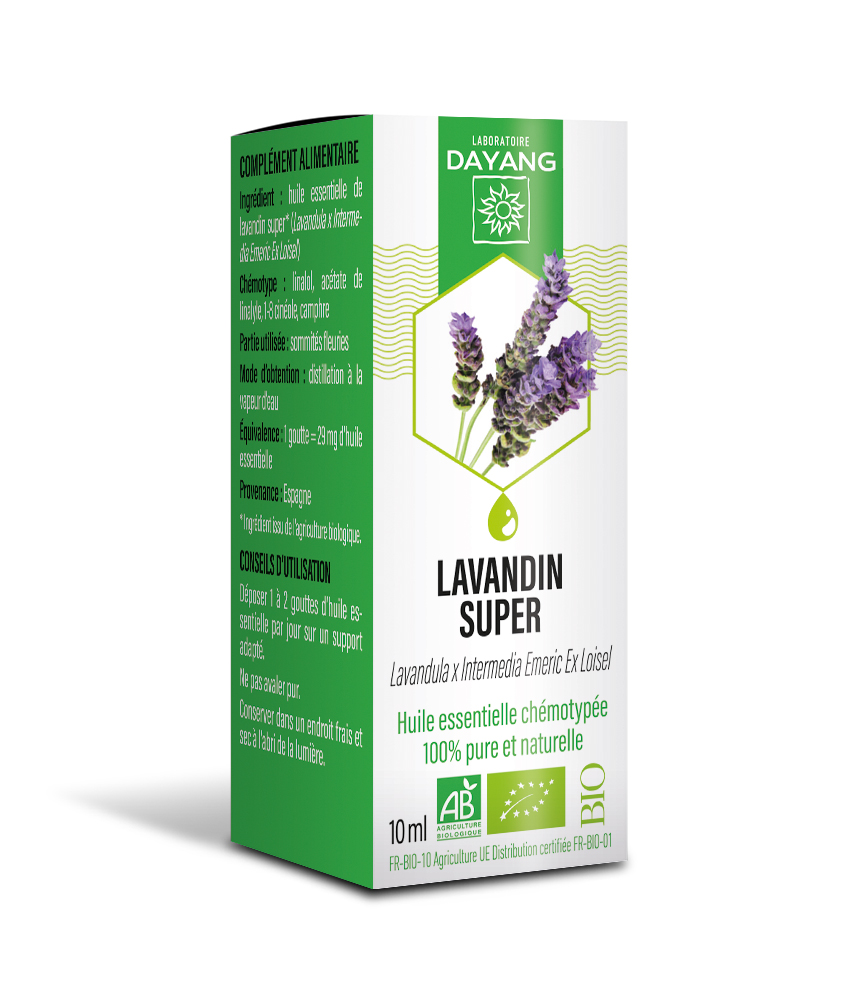 L'huile essentielle de lavandin super bio de Dayang est conditionnée en France, cette huile essentielle est 100% pure et naturelle.