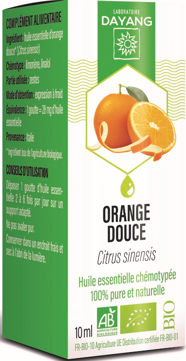 L'huile essentielle d'orange douce bio de Dayang est conditionnée en France, cette huile essentielle est 100% pure et naturelle.
