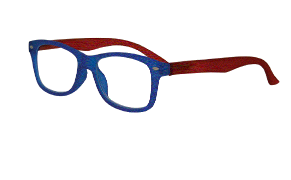 La paire de lunettes Visioptica Caracas en coloris bleu avec des branches rouges offre une correction +1,0. Elles sont dotées de verres asphériques avec des branches flex et une monture métal. L'étui de protection est offert avec les lunettes.