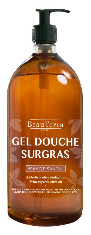 Le gel douche surgras Beauterra au Bois de Santal nettoie les peaux les plus sensibles et délicates en respectant l'équilibre cutané grâce à son pH physiologique et sa formule enrichie en Huile d'amande douce et aux extraits d'Aloe Vera. Enrichi en agents démêlants, il convient à tous les types de cheveux.