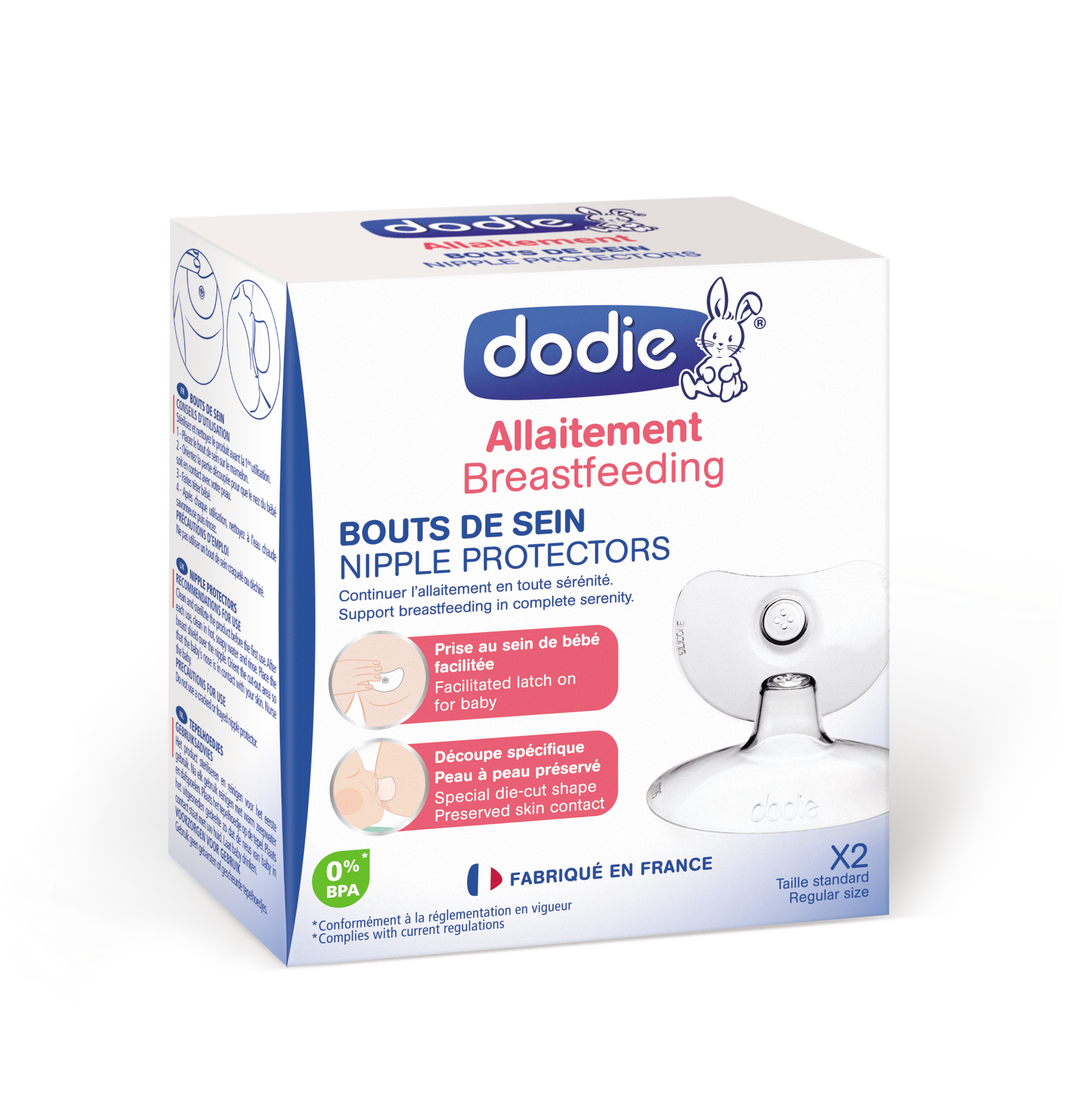 Les bouts de sein Dodie sont recommandés en cas de douleur ou de crevasses lors de l'allaitement. Les bouts de sein en silicone sont souples et s'adaptent à tous les seins grâce à sa taille standard. Ils sont pratiques d'utilisation et restent bien en place lors de la tétée pour le plus grand confort de bébé et de maman !