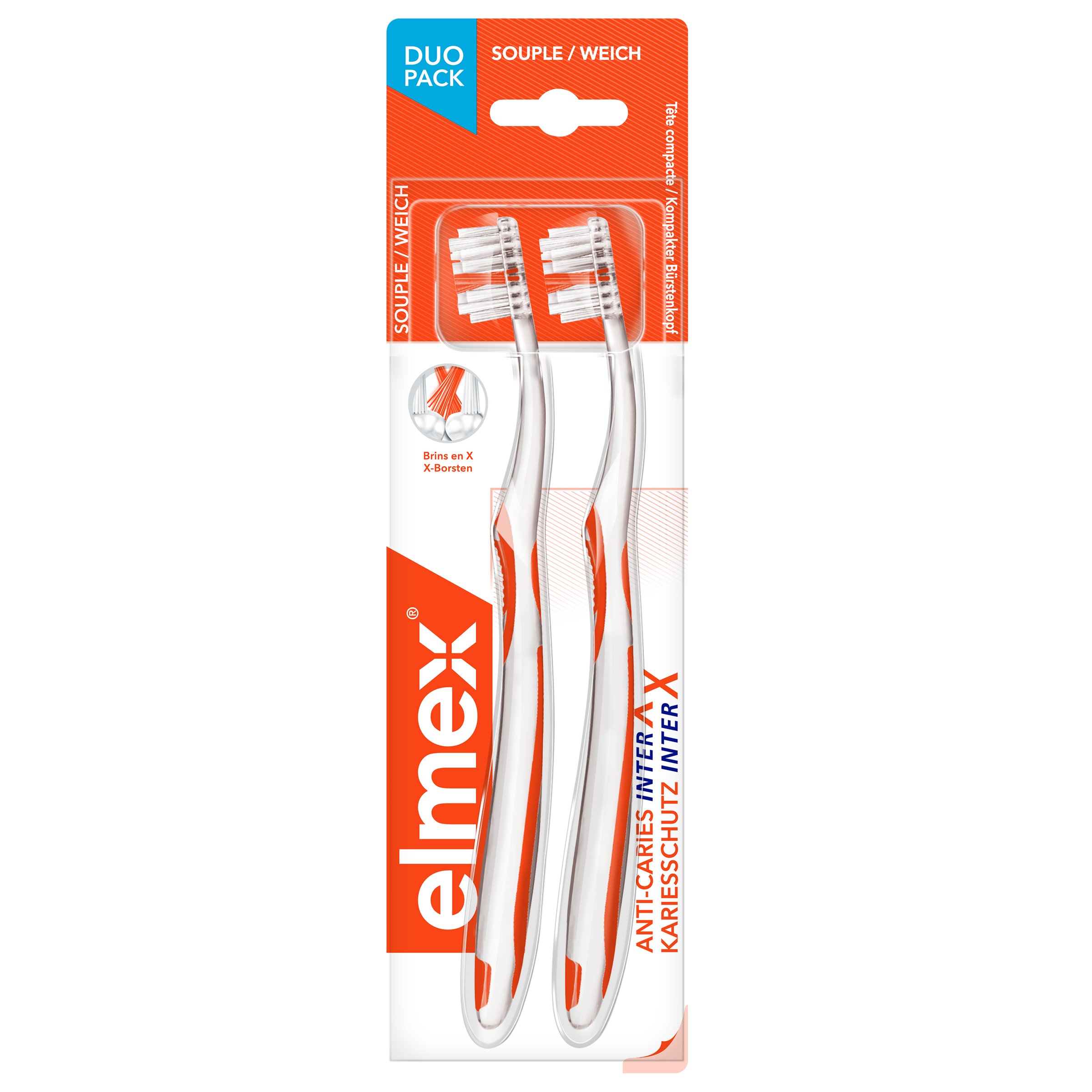 Les brosses à dents Elmex permettent un nettoyage optimal des espaces interdentaires. Les poils sont souples pour respecter l'émail et les gencives. Sa petite tête rend plus facile le nettoyage des molaires moins facile d'accès.