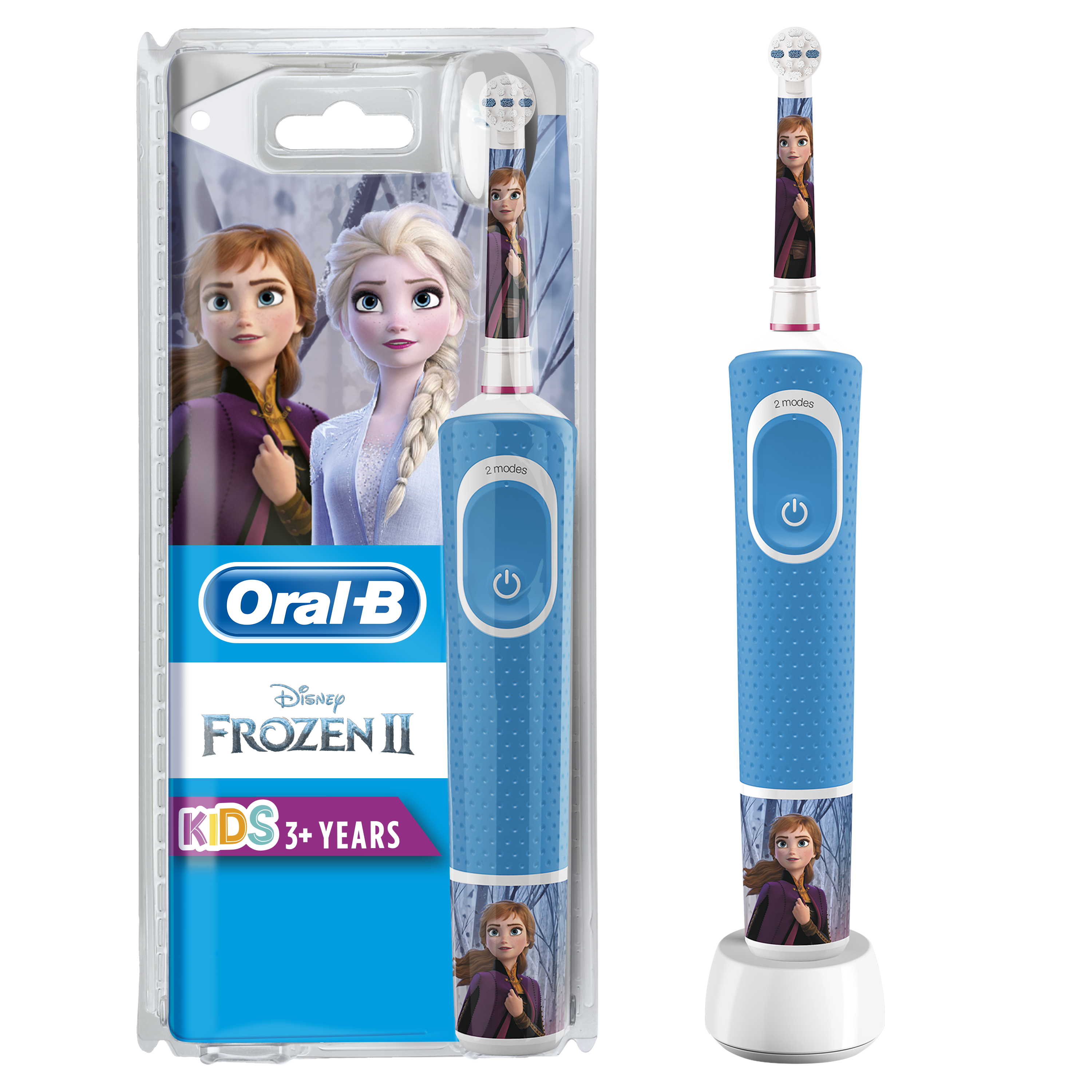 La brosse à dents électrique Oral-B Kids à l’effigie de Disney La Reine Des Neiges 2, adaptée aux enfants à partir de 3 ans, offre le nettoyage doux et efficace d’une brosse à dents Oral-B recommandée par les dentistes. Avec un mode sensible unique adapté aux enfants, cette brosse nettoie en douceur les dents des enfants. Elle élimine plus de plaque dentaire qu’une brosse à dents manuelle classique. Quatre autocollants Disney La Reine Des Neiges 2 sont inclus pour personnaliser le manche.