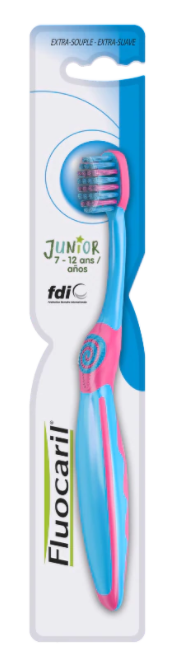 La brosse à dents junior Fluocaril permet de nettoyer en douceur les dents des enfants de 7 à 12 ans et de protèger les gencives. Elle convient aux dents de lait et aux dents définitives.