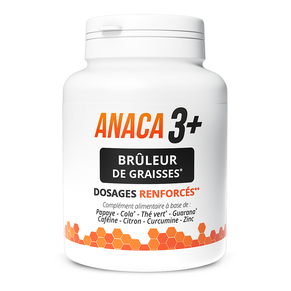 Les gélules Anaca 3+ Bruleur de graisse Dosage renforcés sont des compléments alimentaires à base de plantes. Son dosage est renforcé pour un résultat optimum grâce à ses ingrédients comme le cola, le thé vert, le guarana, la caféine, la curcumine ou encore le zinc.