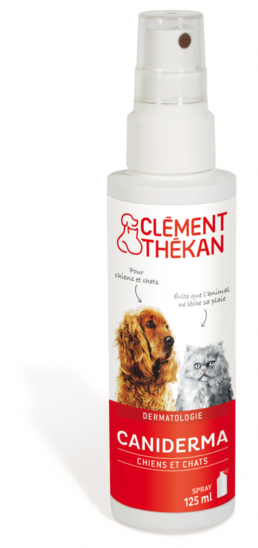 Chez le chien et le chat. Spray répulsif au léchage pour peaux irritées. Caniderma permet de favoriser la réparation naturelle de la peau.