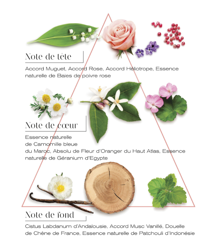 Son flacon en verre teinté de rose nude avec son capot en chêne véritable lazuré blanc apporte de l'élégance et le rend unique. Il est fabriqué en France.