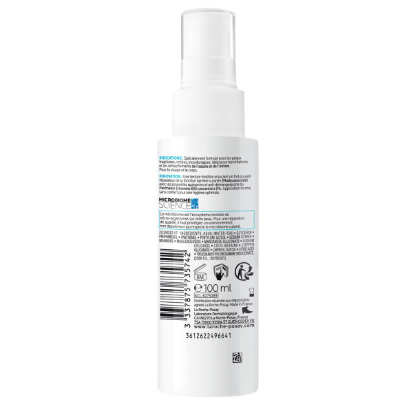 Cicaspray B5 du laboratoire La Roche-Posay est un spray apaisant et réparateur recommandé pour les peaux irritées et fragilisées. Il convient aux adultes et aux enfants. Sa texture légère au rendu invisible réduit l'inconfort de la peau dès la première utilisation. Sa composition combine Madecassoside, à l'action réparatrice et Panthénol, connu pour ses vertues apaisantes anti-démangeaisons.