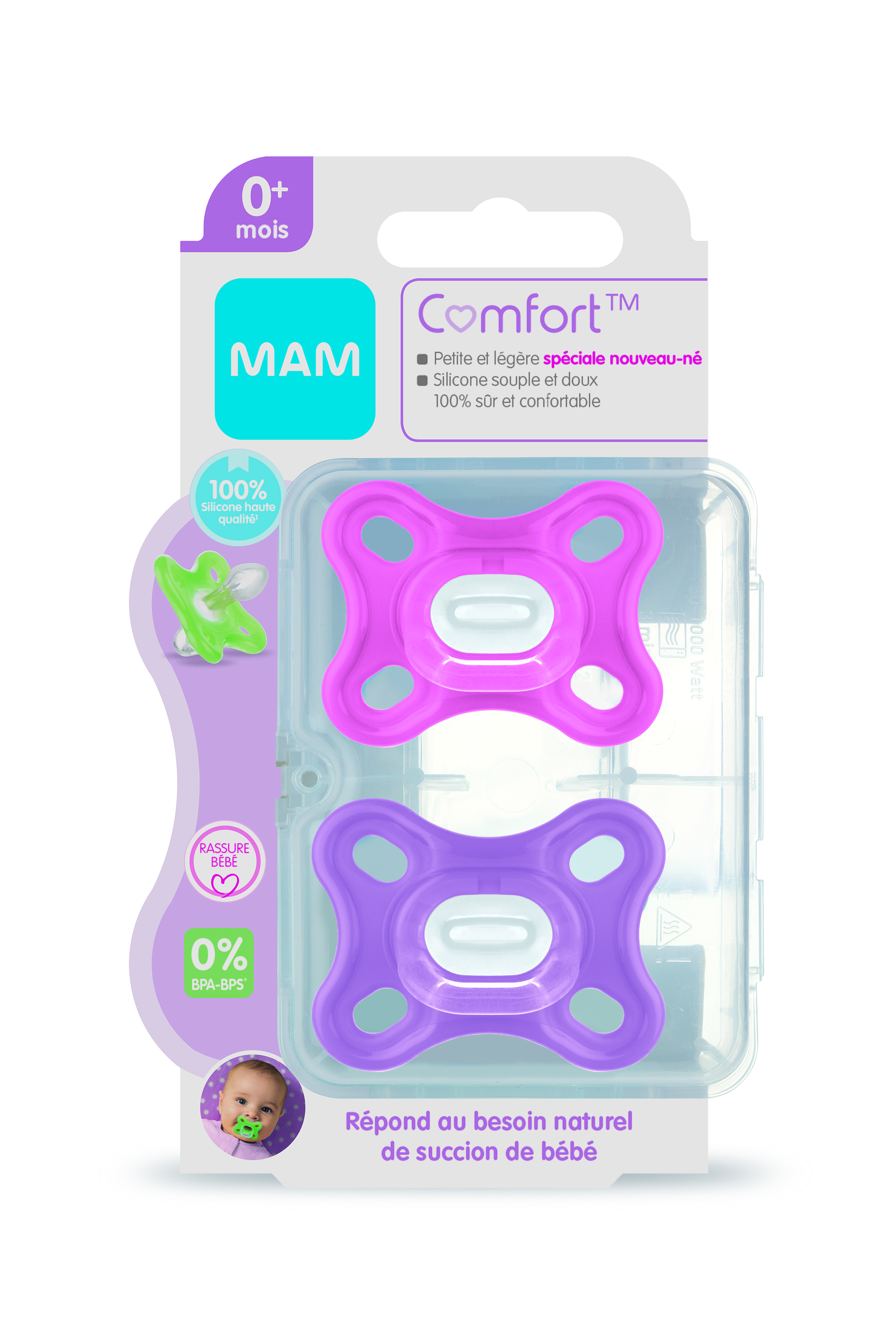 Spécialement conçue pour les nouveau-nés même prématurés, la sucette MAM Comfort est entièrement composée de silicone.