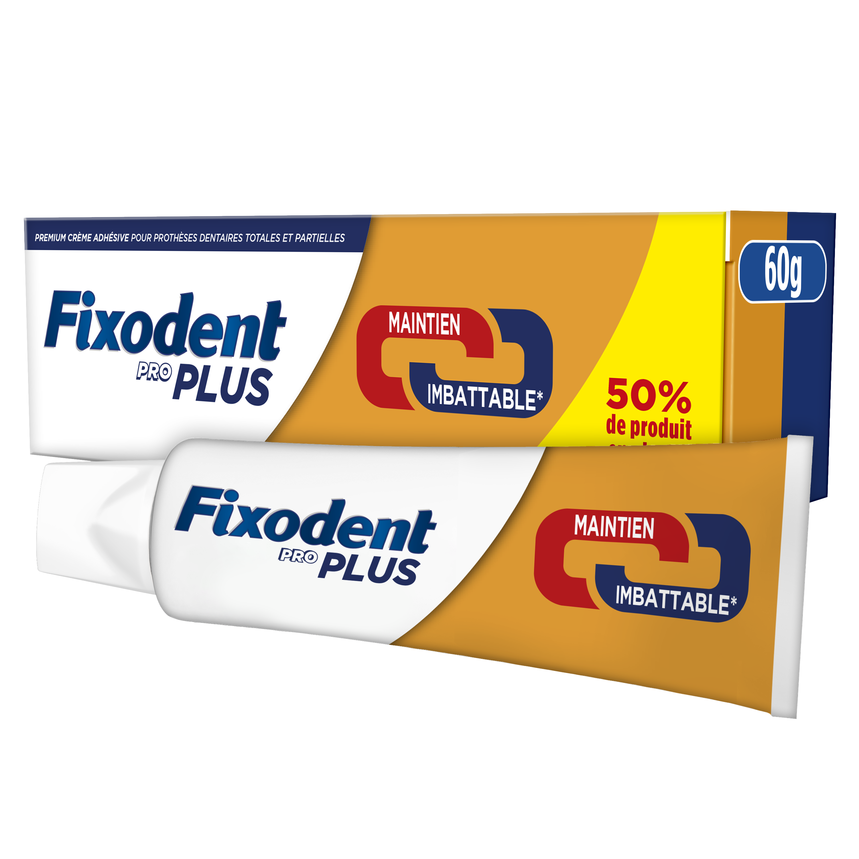 FIXODENT PRO PLUS La Meilleure Fixation crème adhésive prothèses dentaires Tube 60g