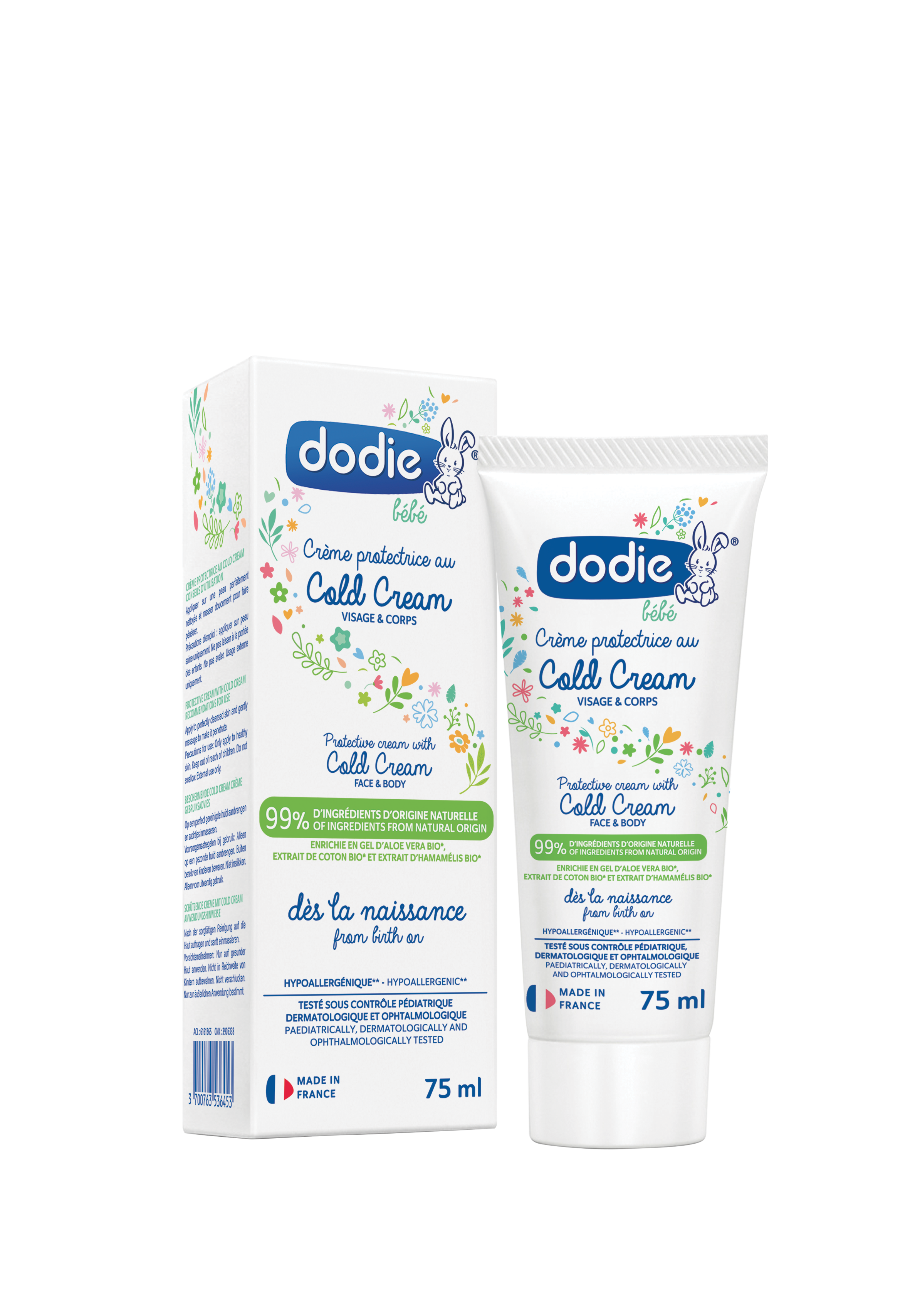 La crème protectrice Cold Cream du laboratoire Dodie est recommandée pour hydrater et protéger la peau de bébé, dès la naissance.