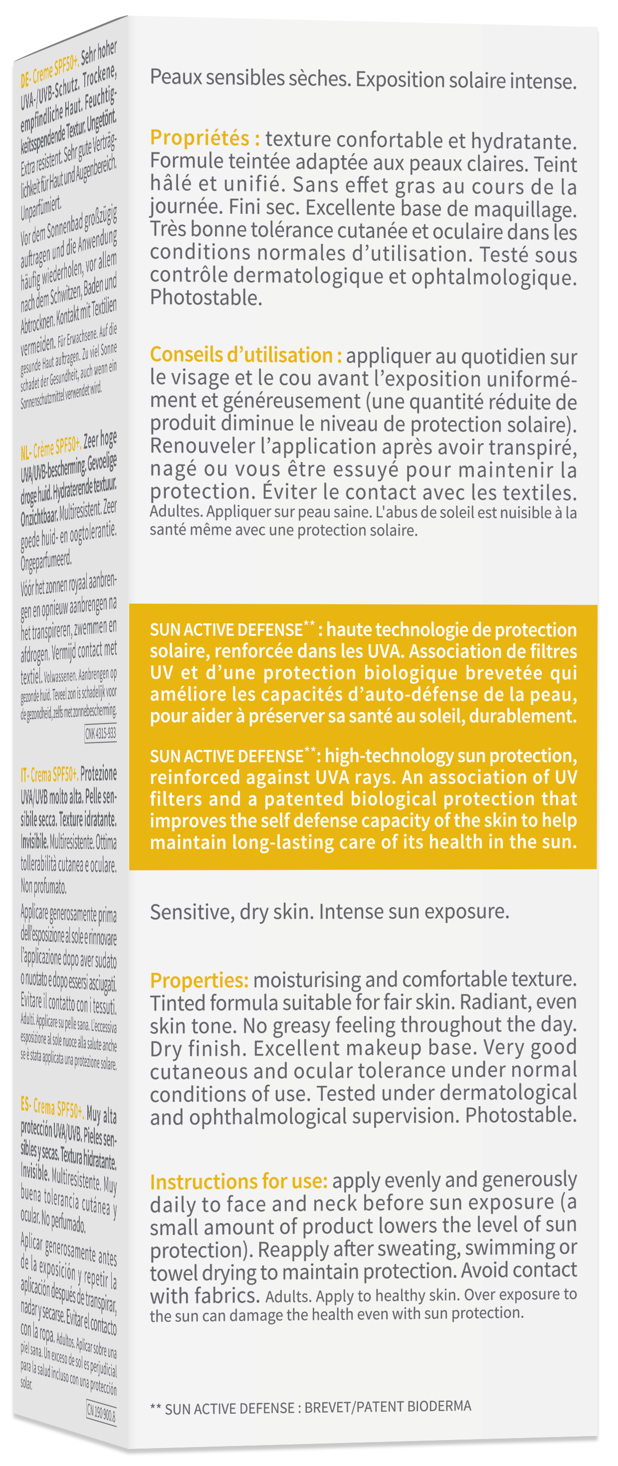 Testé sous contrôle dermatologique et ophtalmologique. Photostable.