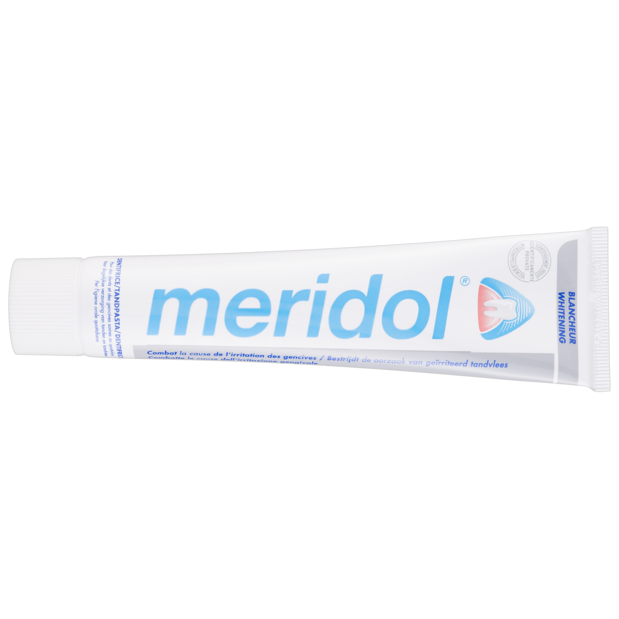 Le dentifrice Meridol blancheur protège les gencives des irritations afin de réduire les saignements tout en éliminant efficacement la plaque dentaire. Il favorise également la blancheur des dents pour une dentition saine et éclatante !
