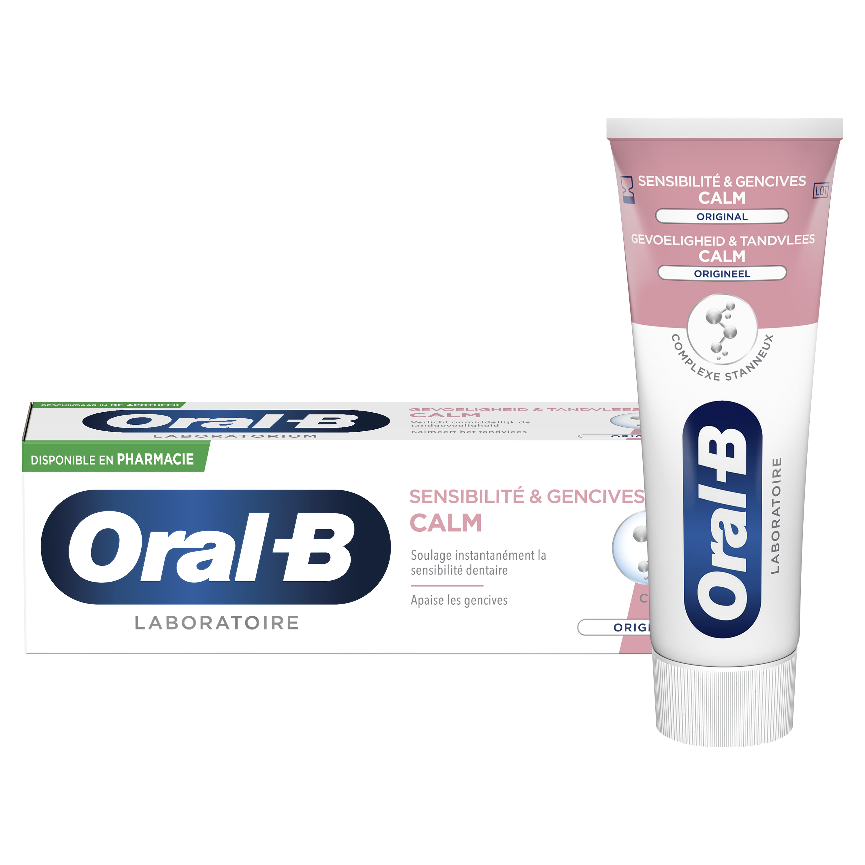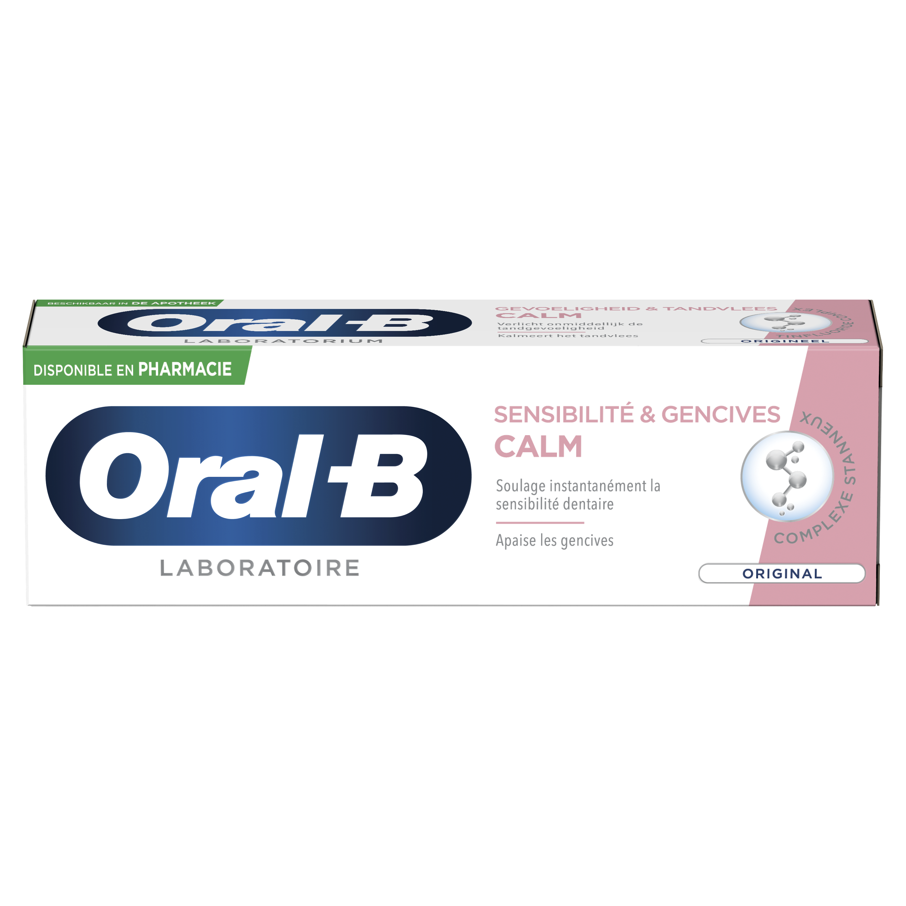 Le dentifrice laboratoire Oral-B Sensibilité et Gencives CALM Original soulage instantanément les douleurs liées à la sensibilité et prévient la sensibilité future.