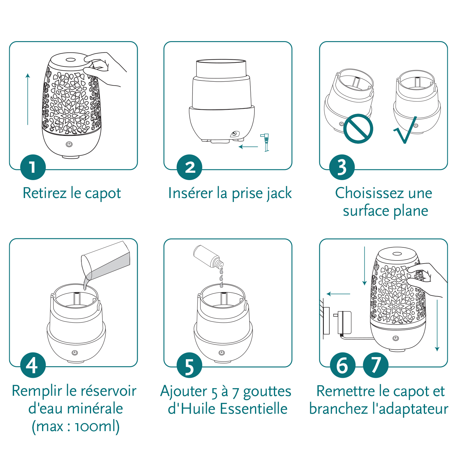 DIFFUSION ULTRASONIQUE : L’eau se charge en molécules aromatiques et se disperse en fines gouttelettes - Le système de diffusion par ultrason permet une diffusion des Huiles Essentielles toute en douceur.