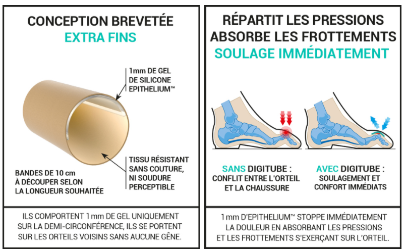 Le digitube Epitact est recommandé pour soulager les douleurs provoquées par les cors et oeils-de-perdrix. Formulé à base de gel silicone Epithelium, il réduit immédiatement les frottements et pressions, ainsi la formation de corne est minimisée.