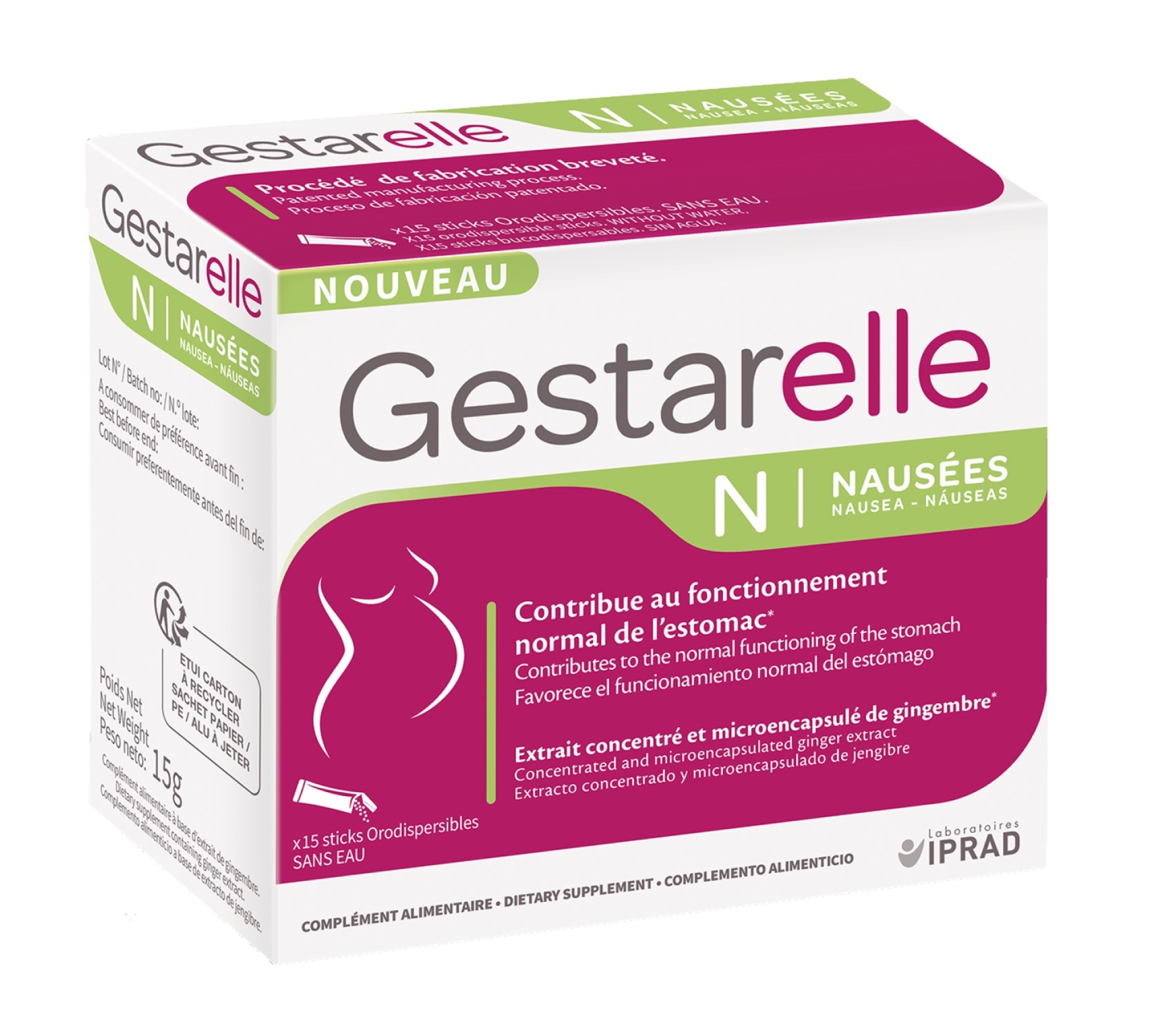 Gestarelle nausées se présente sous forme de stick orodispersibles. Ils sont très faciles d'utilisation car ils ne nécessitent pas d'eau.