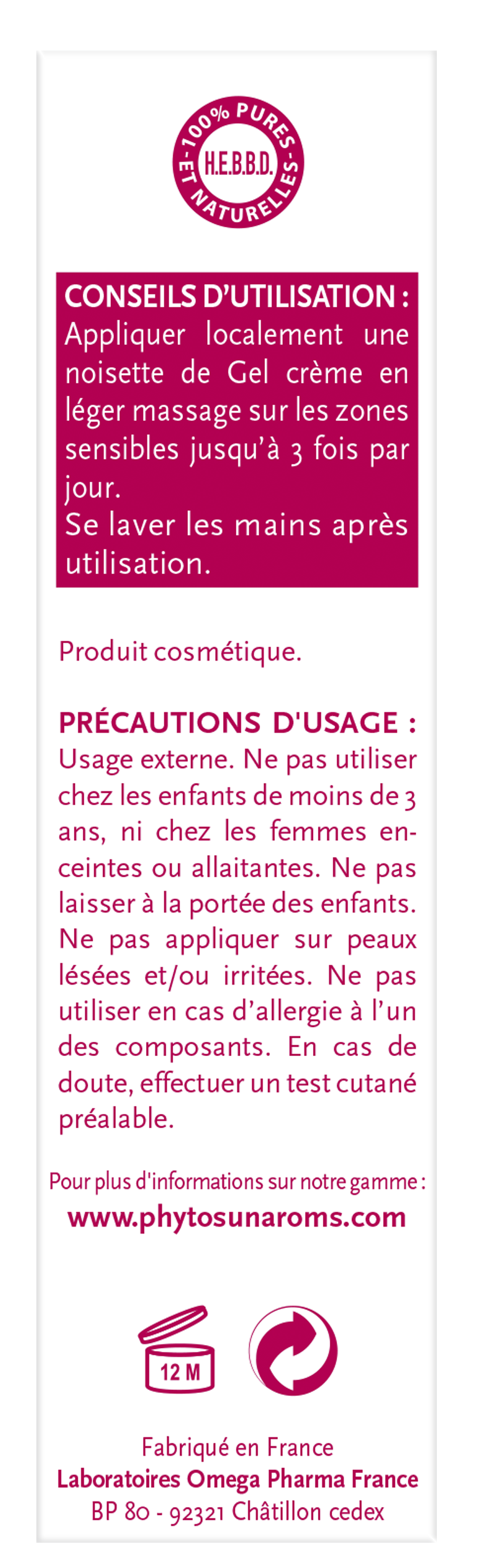 - Appliquer localement une noisette de Gel crème en léger massage sur les zones sensibles jusqu’à 3 fois par jour.