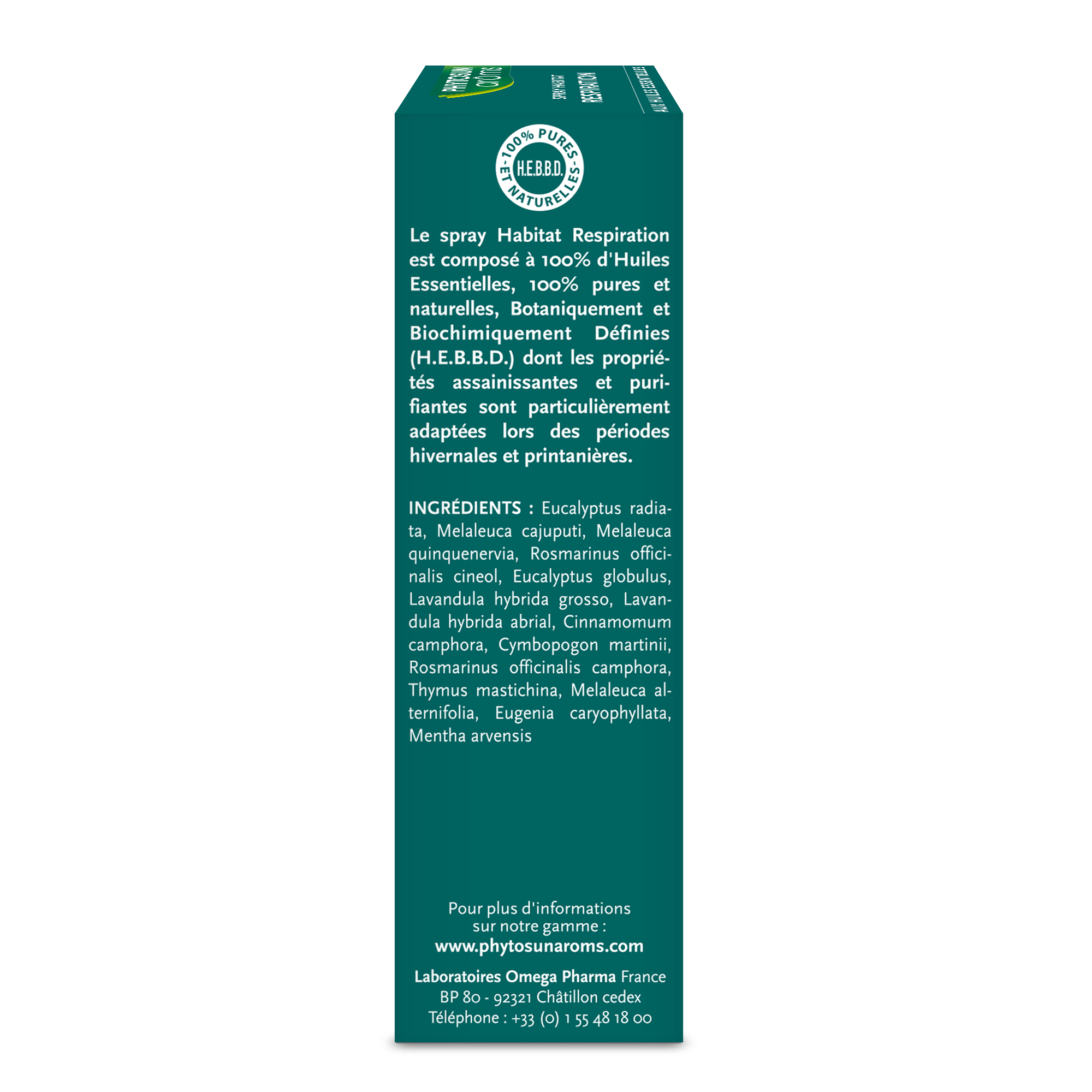 Le Spray Habitat Respiration Phytosun Arôms est composé à 100% d’Huiles Essentielles, 100% pures et naturelles, Botaniquement et Biochimiquement Définies (H.E.B.B.D.) dont les propriétés assainissantes et purifiantes sont particulièrement adaptées lors des périodes hivernales et printanières.