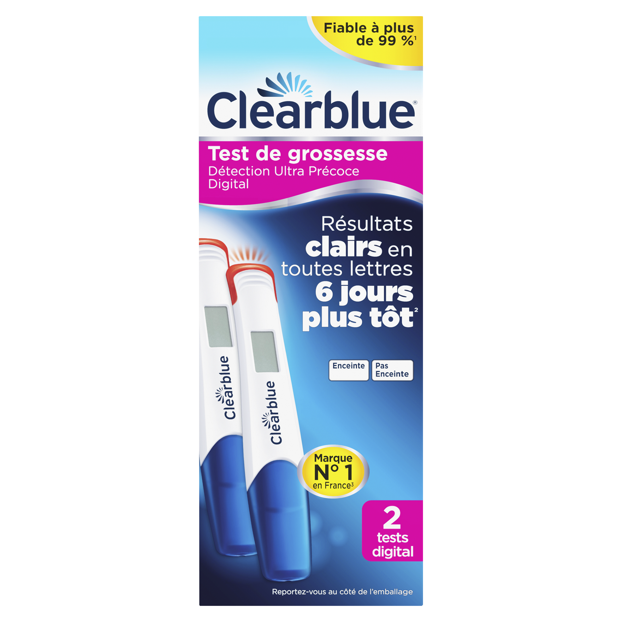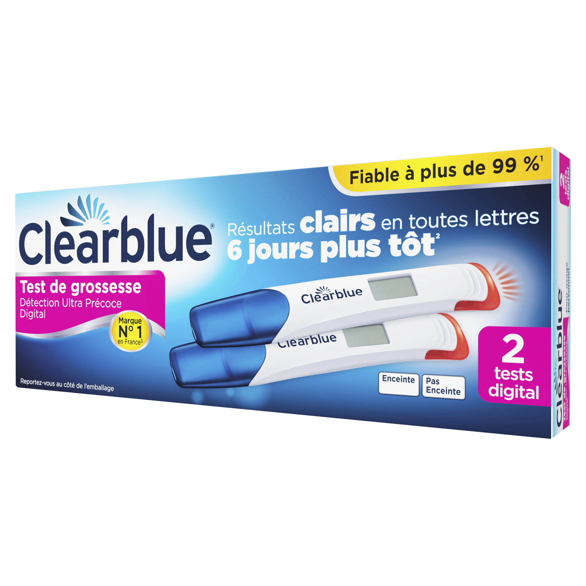 Comme tous les tests de grossesse Clearblue, le test Détection Ultra Précoce Digital est fiable à plus de 99 % dès la date présumée de vos règles.