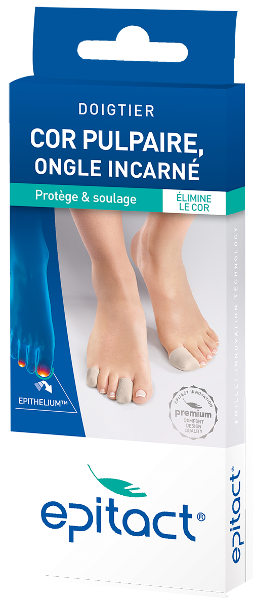 Le doigtier Epitact sont spécialement conçu pour soulager les cors pulpaires et protéger les ongles incarnés ou les ongles bleus. Il contient du gel silicone EPITHELIUM 26® idéal pour répartir les pressions et limiter les frottements. Le doigtier garantit un bon maintien et est simple d'utilisation, il peut également être utilisé pour prévenir l'apparition des cors. Lavable et réutilisable. Taille L, largeur 36 mm, boite de 1 doigtier.