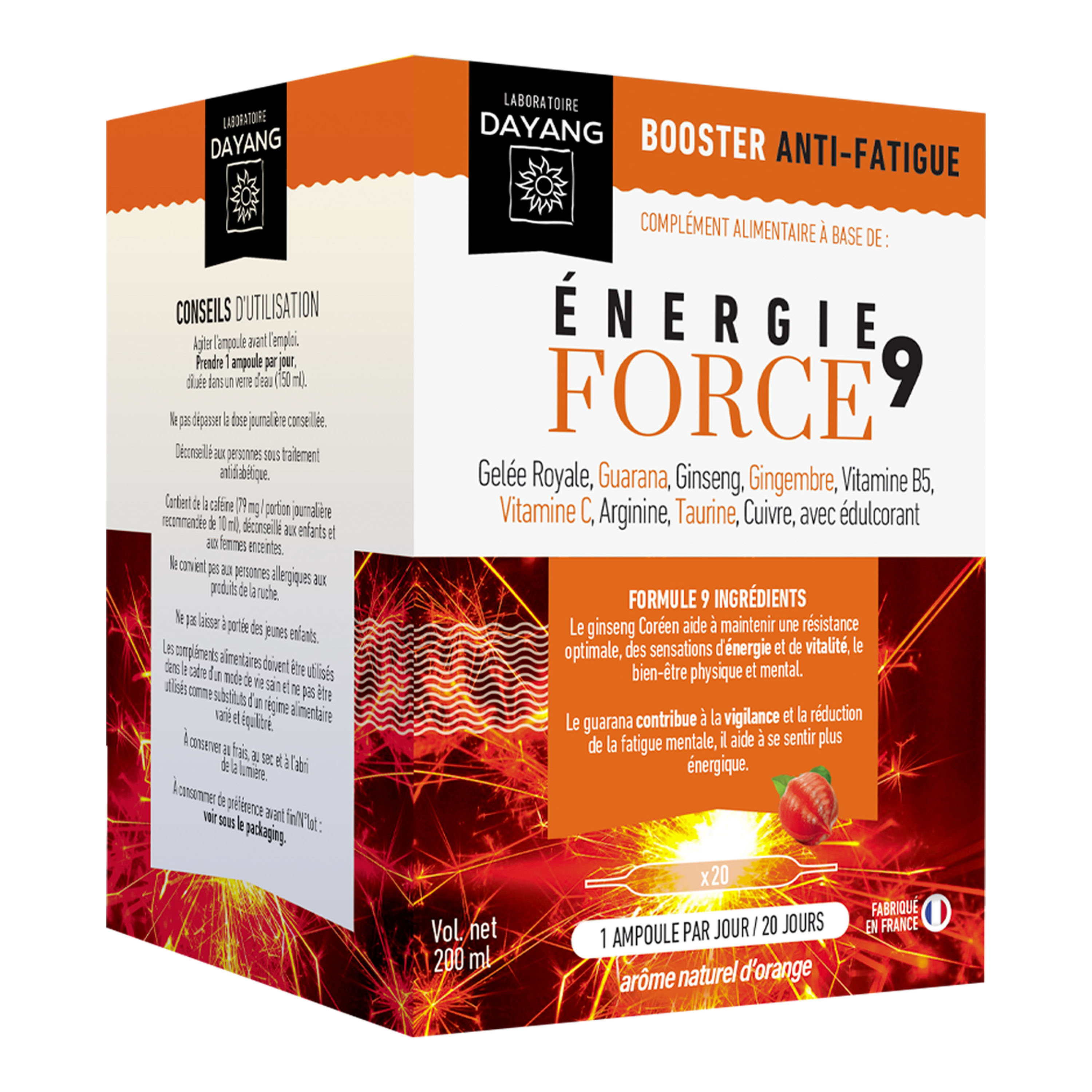 Les ampoules Energies sont idéales pour combattre contre les états de fatigues passagères. Elles procurent de l'énergie et renforce l'organisme. En plus de cela, ces ampoules contiennent de la Vitamine B5 et C qui aident à réduire la fatigue.