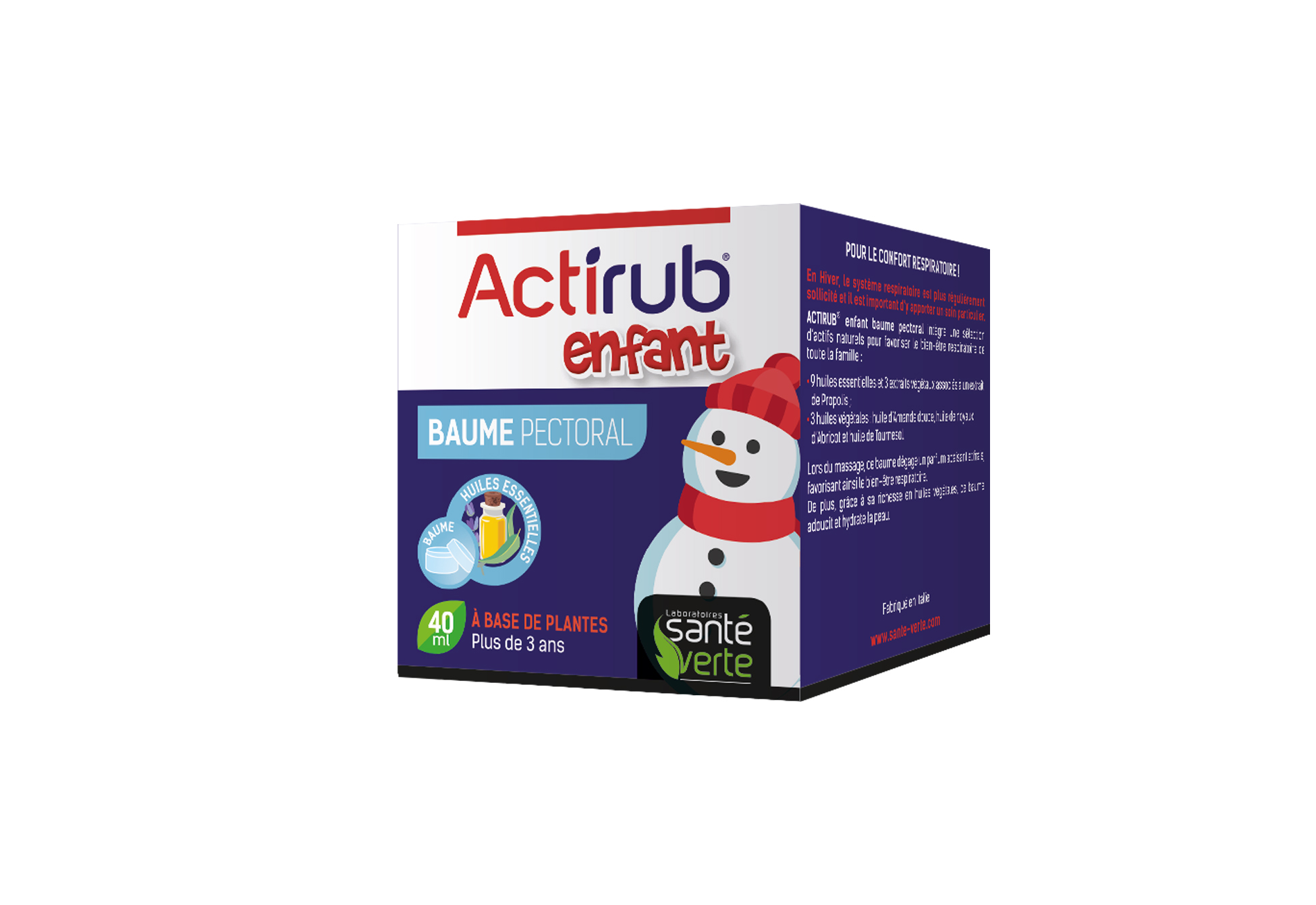 Le baume pectoral Actirub est conçu pour favoriser le bien-être et le confort des voies respiratoires. Il s'utilise en cas de rhume ou de rhinopharyngite dès l'age de 3 ans. Le baume se compose d'huiles essentielles et de propolis ainsi que des huiles végétales.