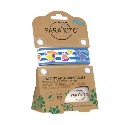 Le bracelet anti-moustiques Parakito peut etre porté autour du poignet ou de la cheville. Ce bracelet enfant à motif "jouet" en néoprène est fourni avec deux plaquettes imprégnées d'une formule à base d'huiles essentielles favorisant l'éloignement des moustiques.