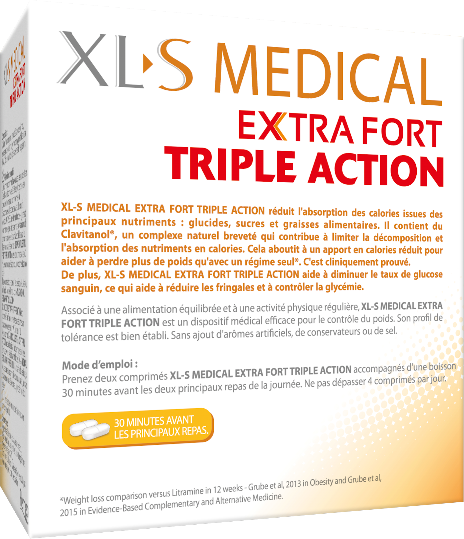 Une aide à la perte de poids efficace : XL-S MEDICAL Extra Fort Triple Action vous aide à perdre du poids grâce au Clavitanol®, dont l'efficacité a été cliniquement prouvée.