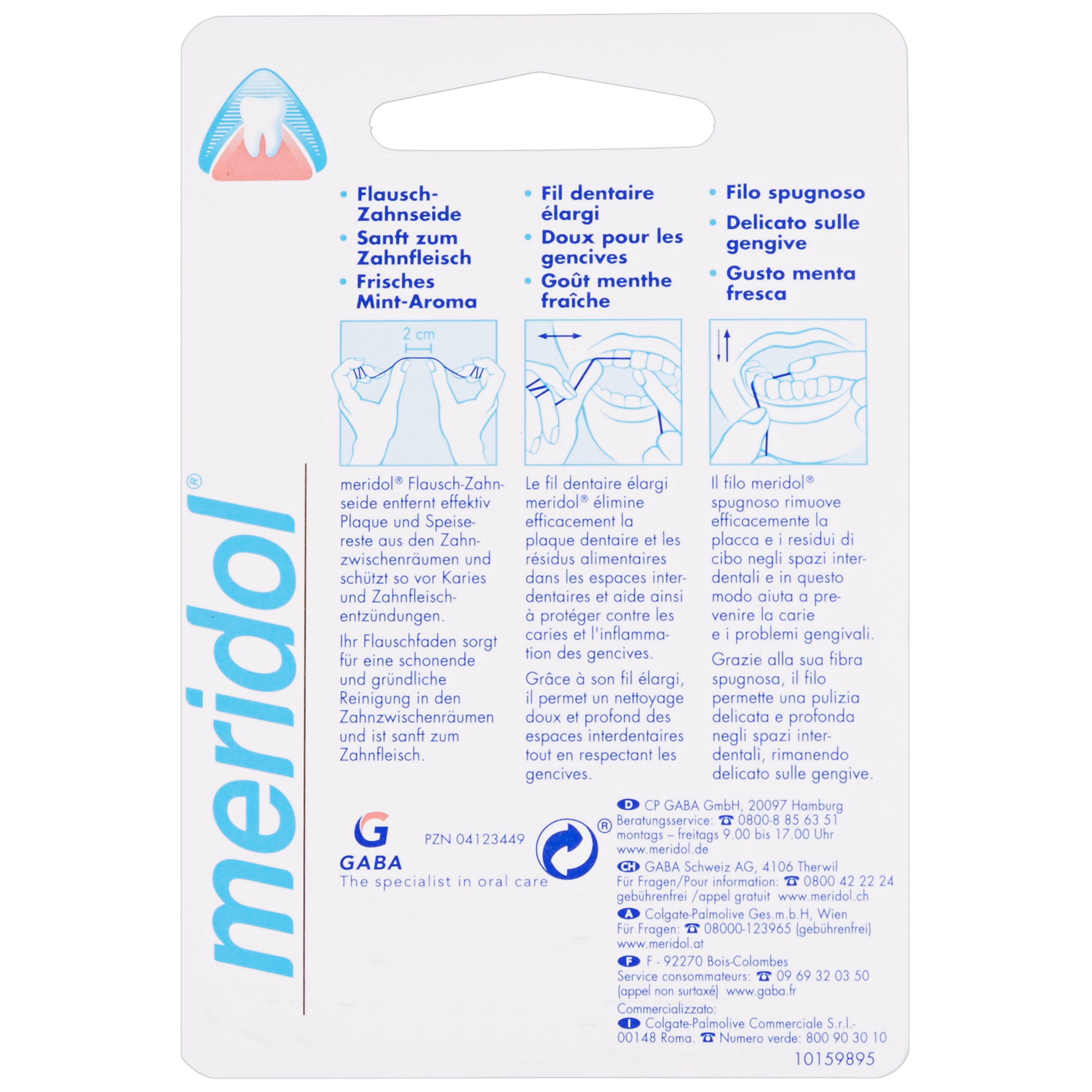 Le fil dentaire Meridol permet de compléter le brossage des dents notamment pour éliminer les résidus alimentaires logés entre les dents. L'utilisation d'un fil dentaire contribue à protéger contre les caries et l'inflammation des gencives.
