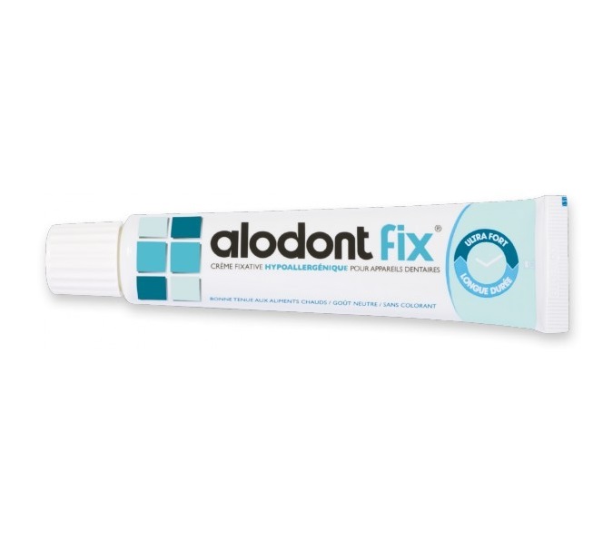 La crème fixative Alodont Fix aide à fixer l'appareil dentaire sur une longue durée. Pour votre confort son goût est neutre et ne contient pas de zinc, de colorant ni conservateur.