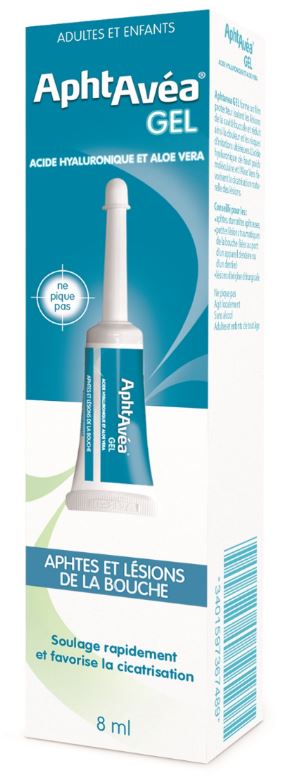 Le gel AphtAvéa Acide Hyaluronique soulage immédiatement les aphtes et les lésions de la bouche et aide à la cicatrisation.