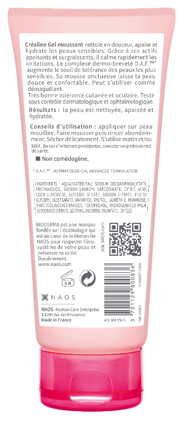 Le gel moussant micellaire Créaline du laboratoire Bioderma est recommandé pour nettoyer la peau tout en douceur. Il permet également de démaquiller le visage et les yeux. Après utilisation, la peau est propre, hydratée et apaisée.