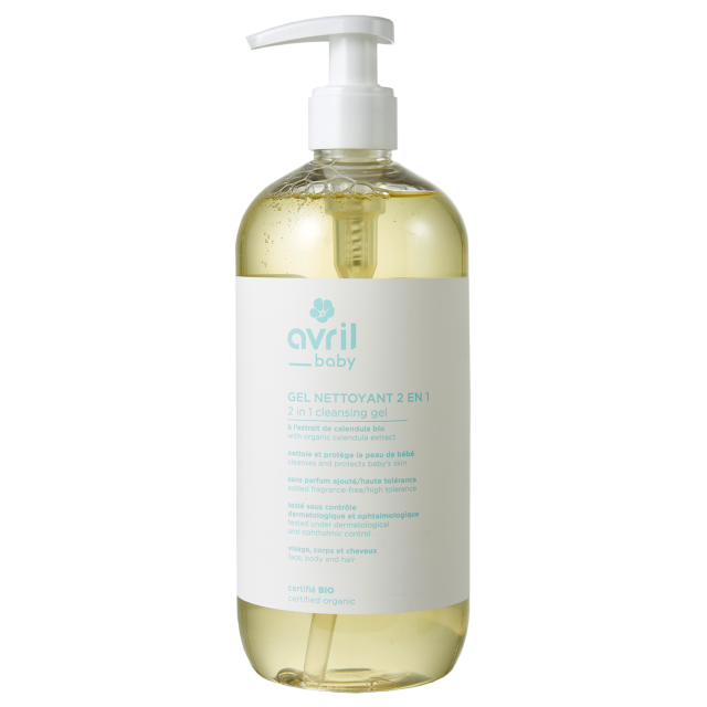 Ce gel nettoyant 2 en 1 pour les bébés à l 'eau florale de camomille est certifié bio. Il nettoie tout en douceur le visage, le corps et les cheveux de bébé. Il est formulé sans savon, sans parfum ajouté pour une meilleure tolérance. Celui-ci est également testé sous contrôle dermatologique et ophtalmologique, c'est un produit végan qui est fabriqué en France.