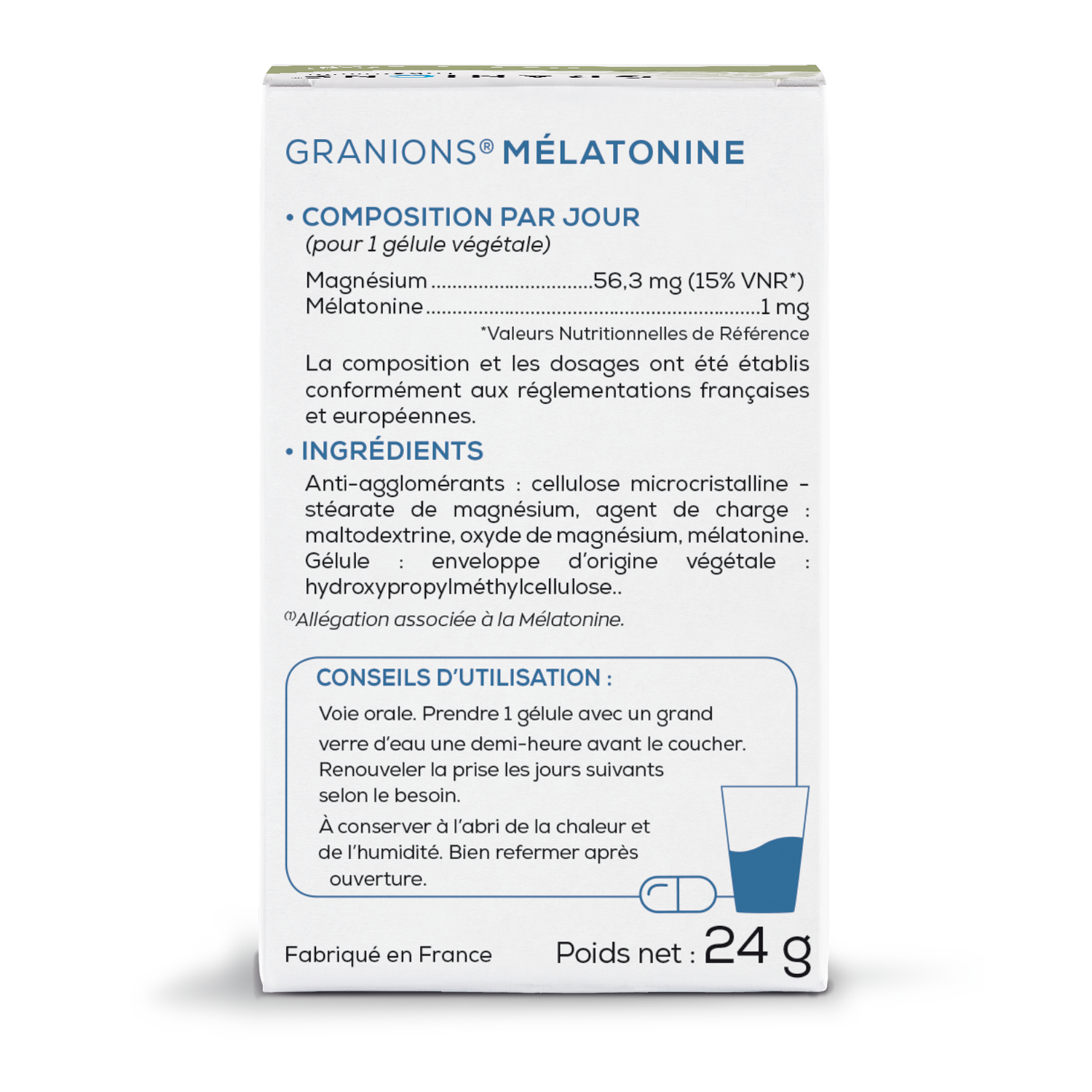- Prenez 1 gélule avec un verre d'eau 30 minutes avant d'aller vous coucher