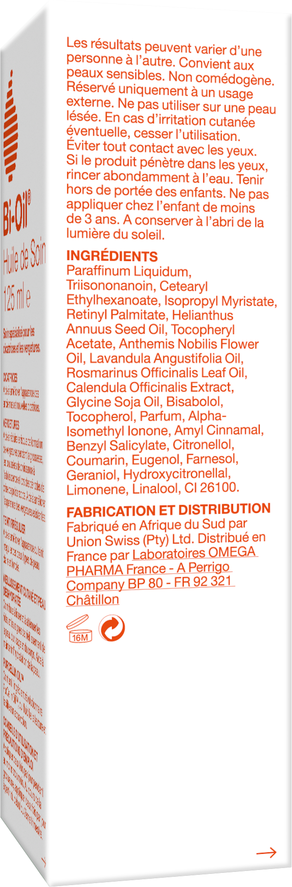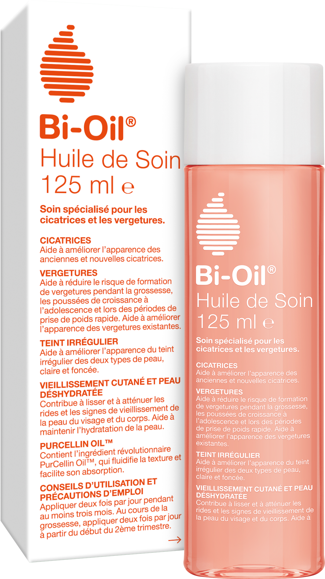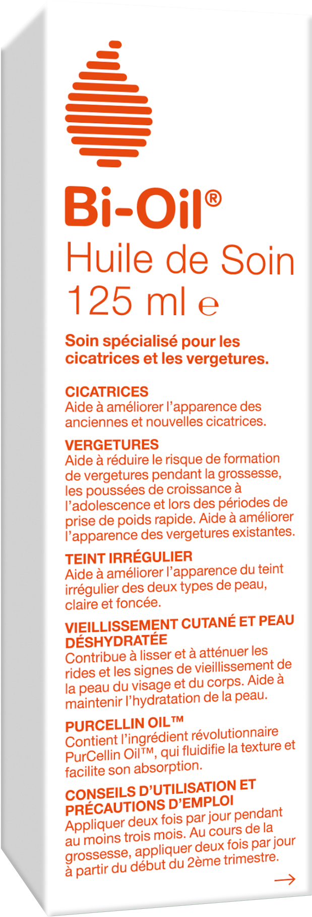 Huile de soin : Aide à réduire le risque d’apparition de vergetures et à améliorer l'apparence des vergetures existantes – Aide à améliorer l’apparence des cicatrices nouvelles et anciennes