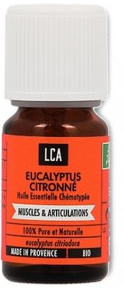 L'huile essentielle d'Eucalyptus citronné bio est recommandée pour soulager les inflammations des ligaments, entorses, torticolis, lumbagos et sciatiques.
