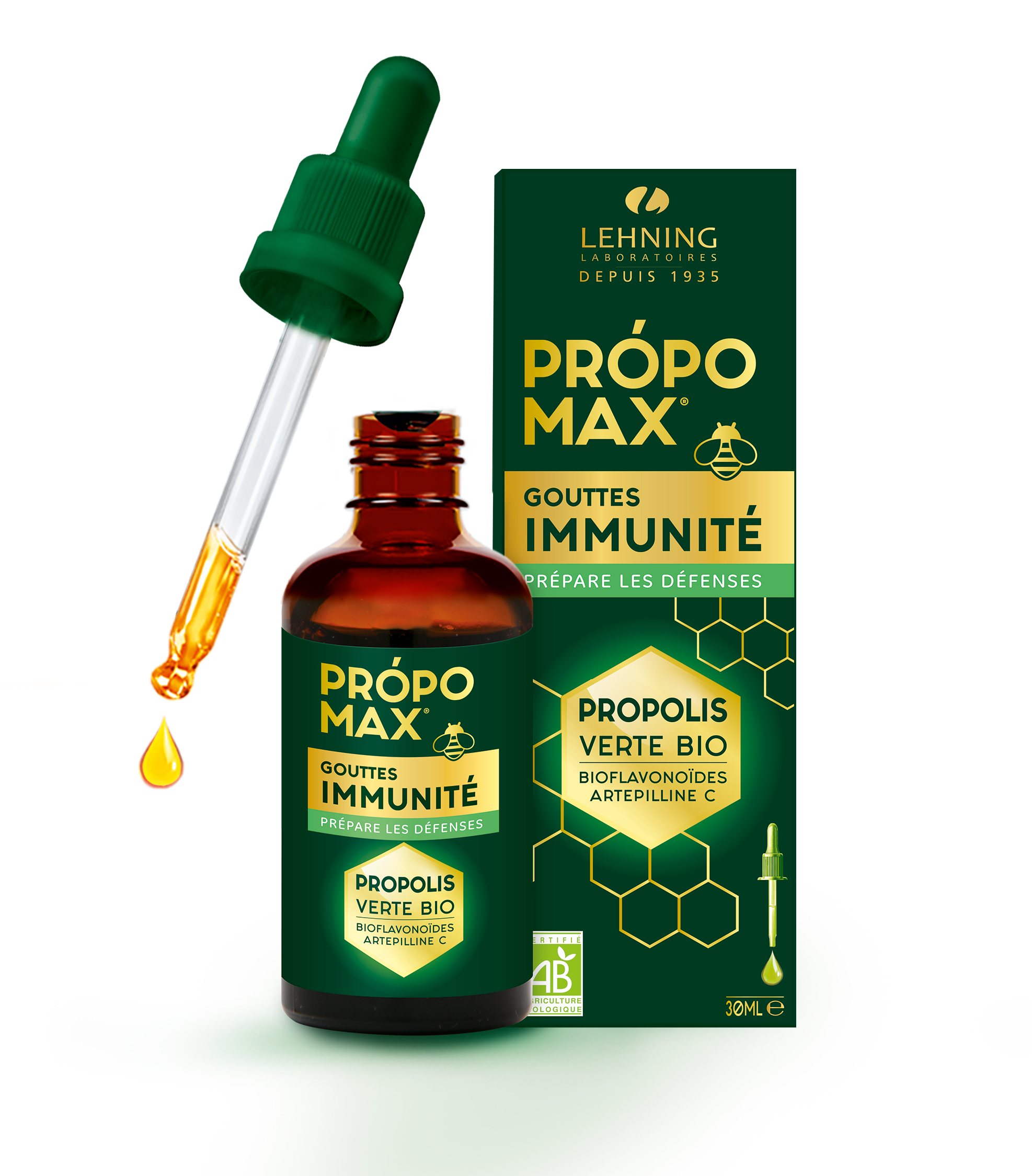 Les gouttes Immunité Própomax des Laboratoires Lehning à l'extrait de propolis verte pure bio du Brésil (30 %) sont vos alliées pour les changements de saison.