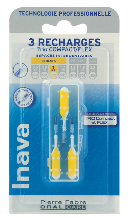 3 recharges qui s'adaptent sur les brossettes Trio Compact et Flex. Ces brossettes permettent de compléter l'hygiène bucco-dentaire et d'éliminer efficacement les résidus alimentaires.