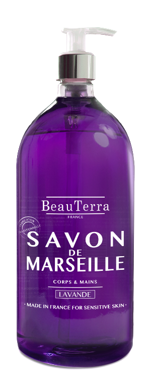 Enrichi en huile d'olive nourrissante et protectrice, le savon liquide de Marseille Beauterra nettoie en douceur les mains et le corps.