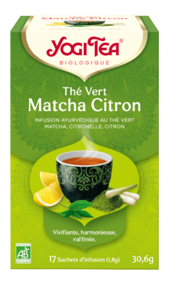 Yogi Tea Matcha & Citron est une infusion aux plantes composée d'ingrédients issus de l'Agriculture Biologique.