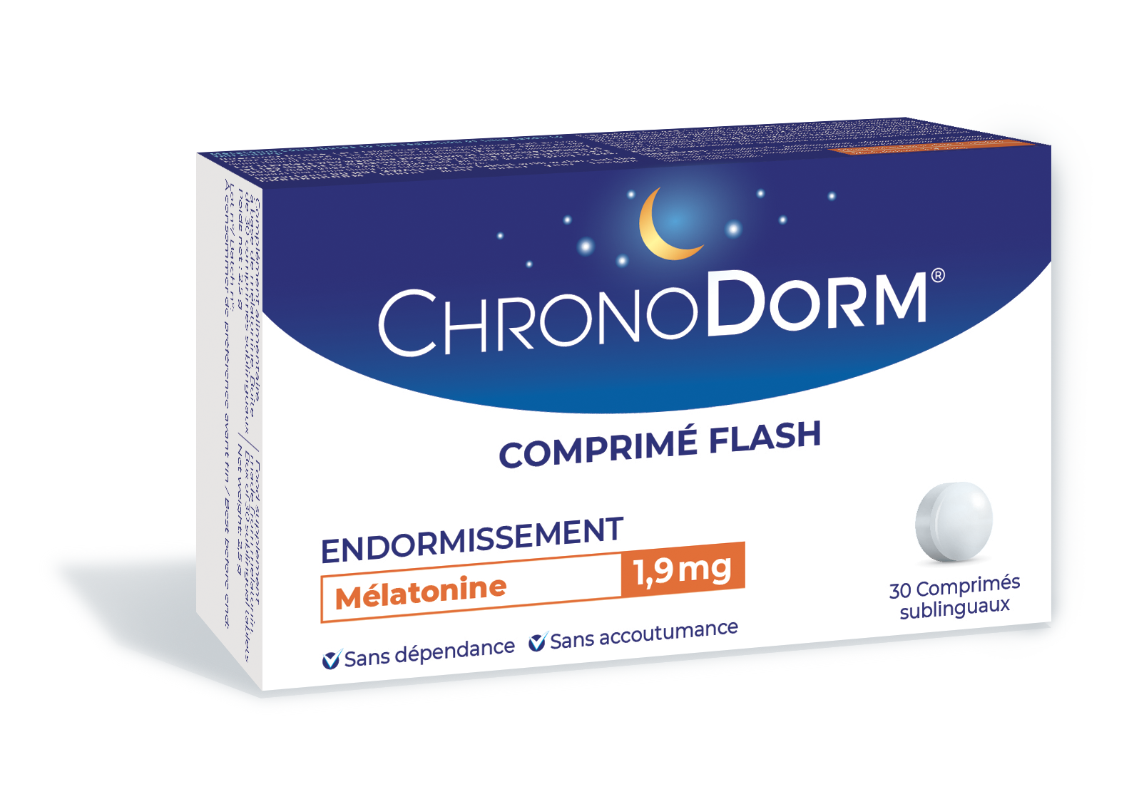 ChronoDorm Mélatonime est un complément alimentaire qui permet de réduire le temps d'endormissement pour les personnes ayant des difficultés à trouver le sommeil.