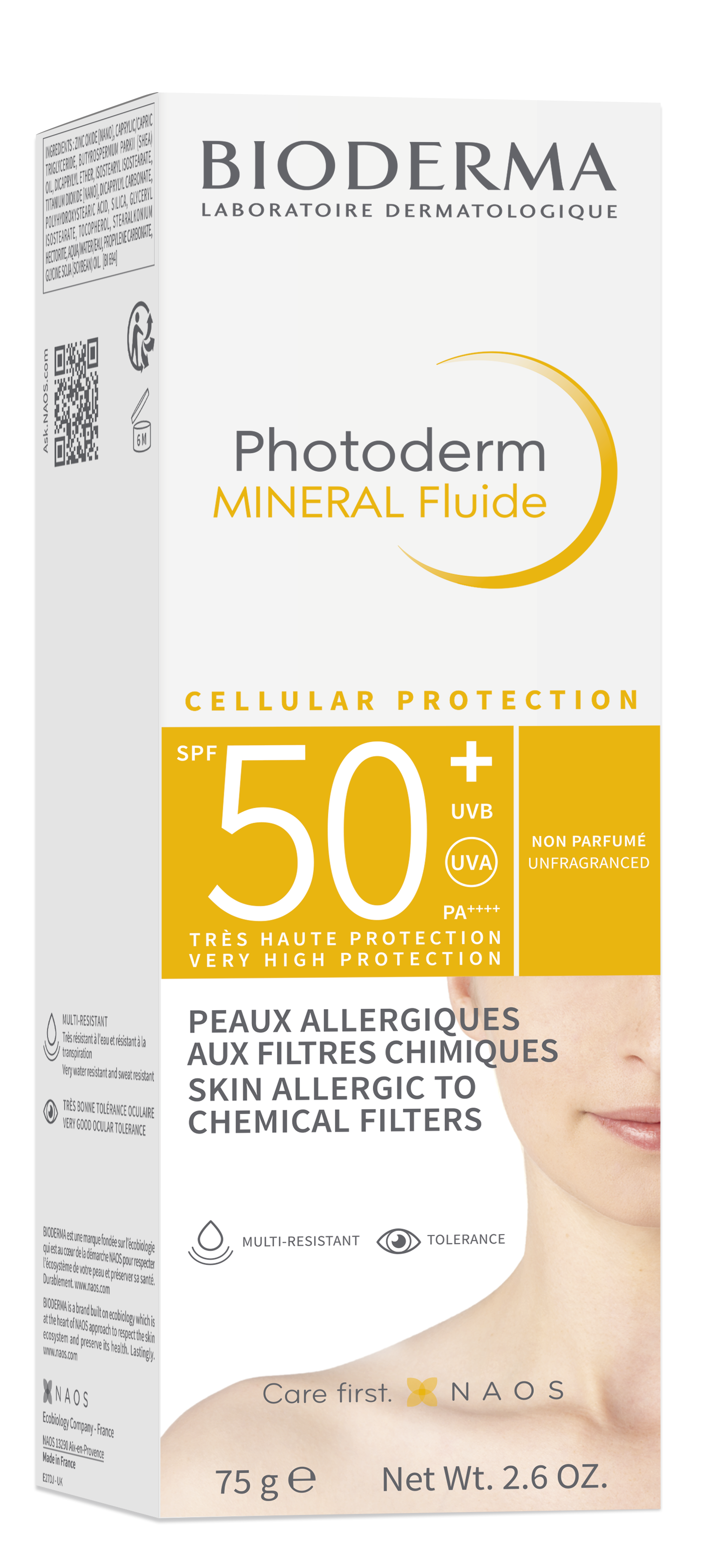 Peaux allergiques aux filtres chimiques et au parfum.