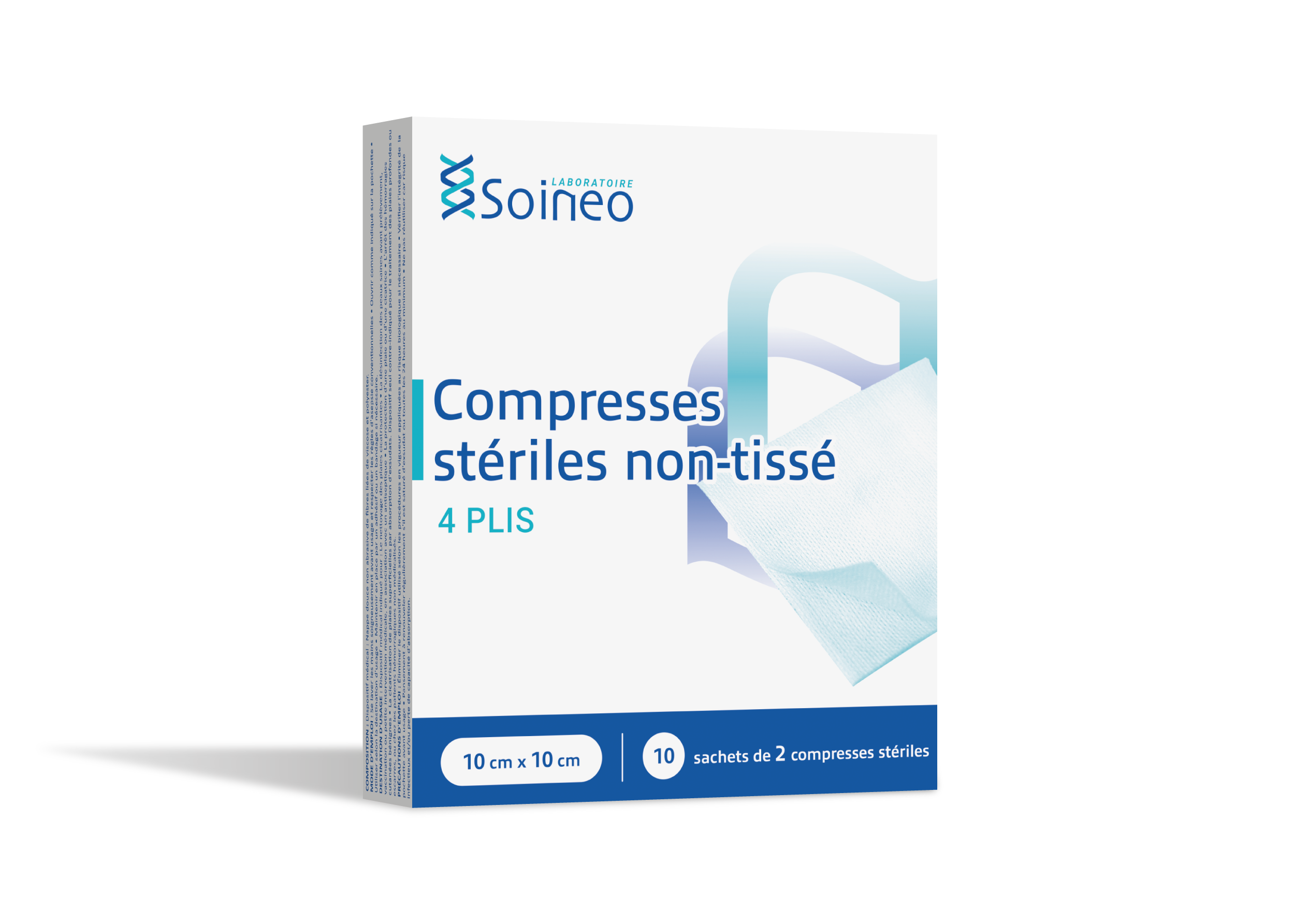 Les compresses stériles Soineo sont adaptées pour effectuer les premiers soins de plaies importantes ou suintantes et pour le soin des plaies pouvant cicatriser par première intention.